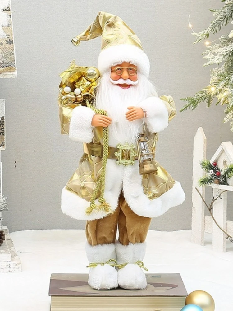 12-inch Cute Santa Claus Statue - Bright Polyester Christmas Decoration for Holiday Parties, Events and Home Displays, with Fest