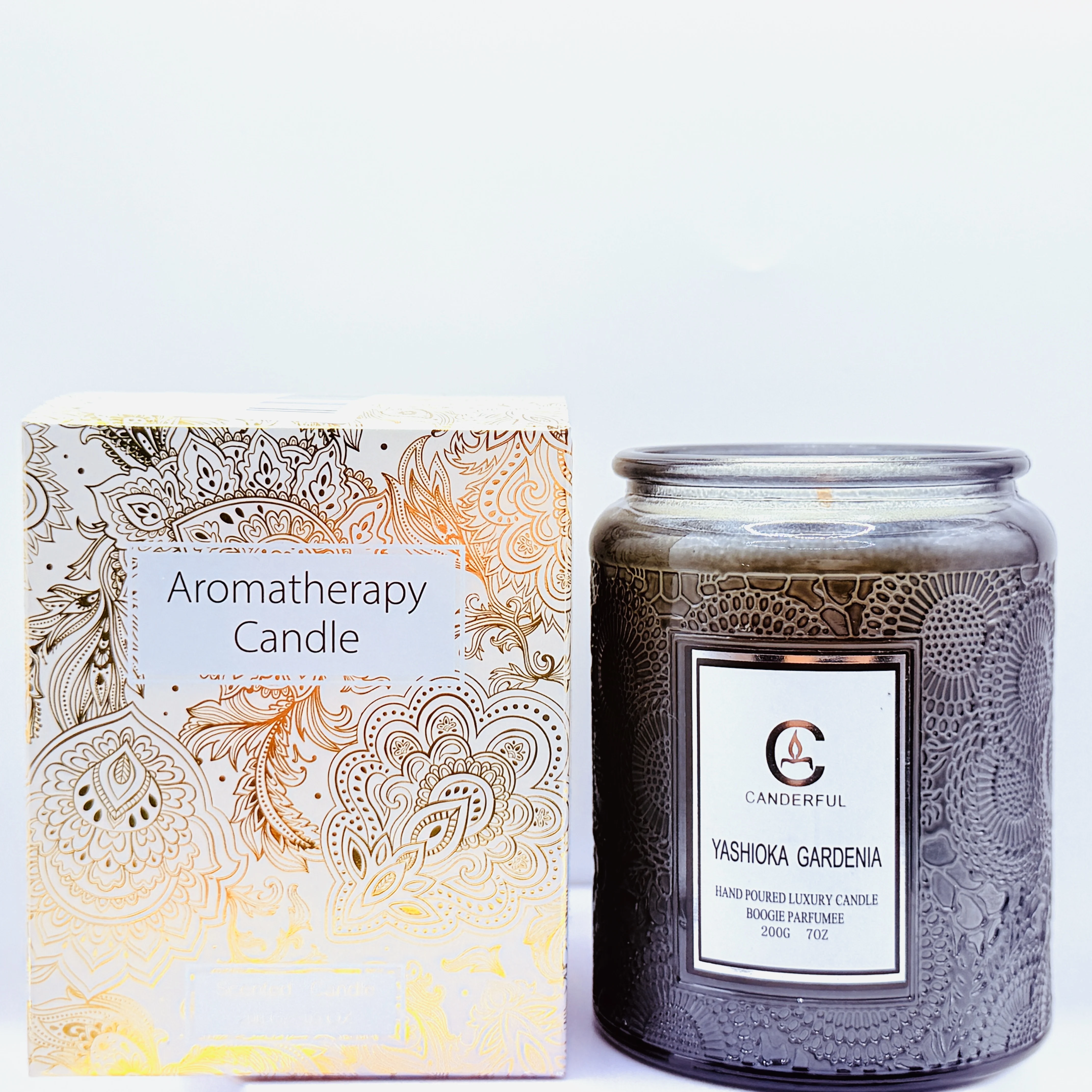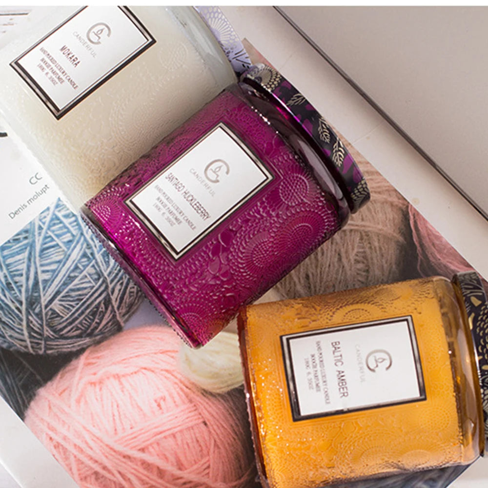 Embossed Glass Scented Candle Soy Wax Aromatherapy Candle | 5 Scents | 40 Hour Long Burn | Plant Essential Oil Clean Burn