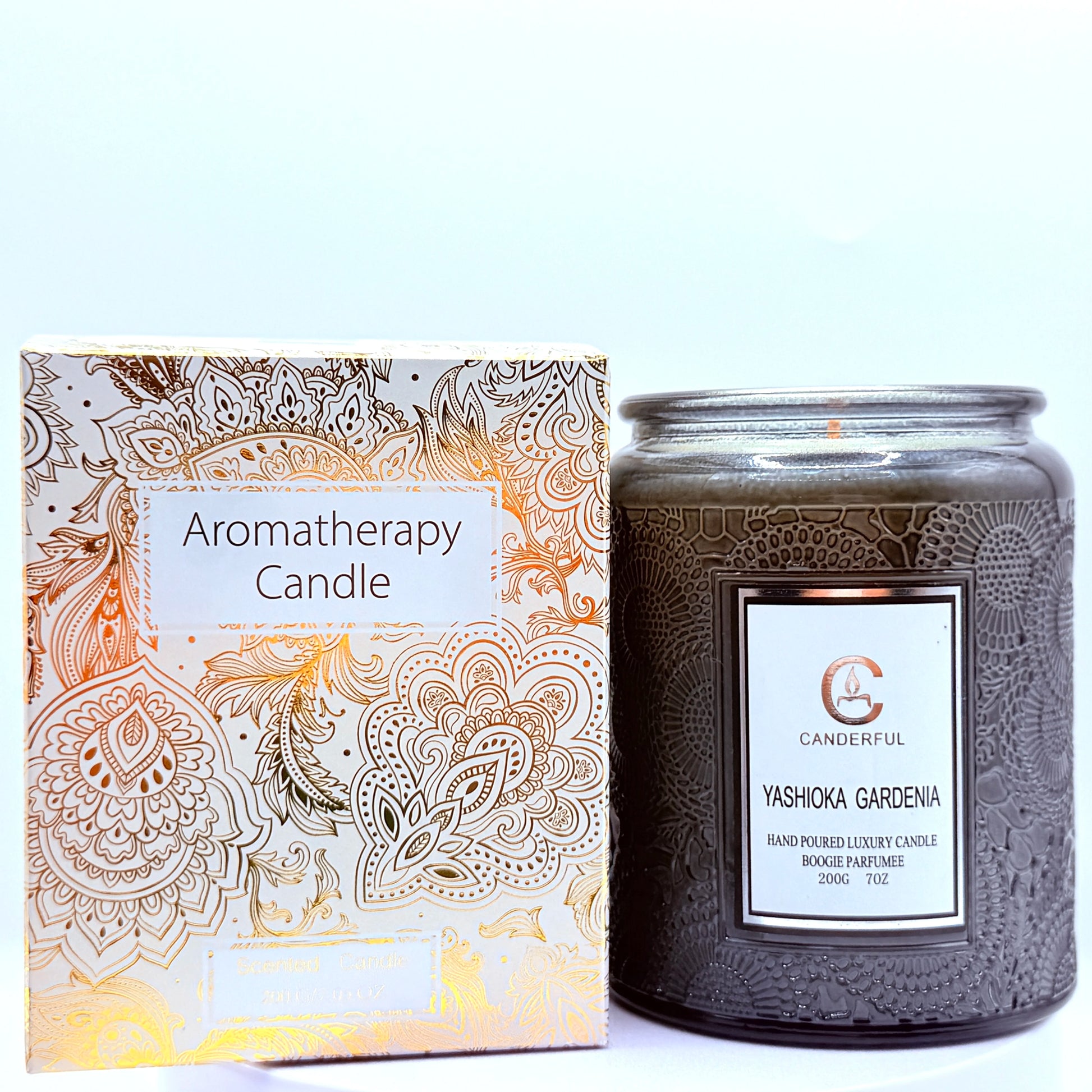 This embossed glass scented candle is centered on the concept of sustainability, carefully blending natural plant soy wax with high-purity essential oils. In 40 hours of soft candlelight, it infuses your space with pure fragrance. The hand-blown embossed glass bottle body refracts light into artistic ripples. Even if the candle burns out, it can still be rejuvenated as an exquisite container.