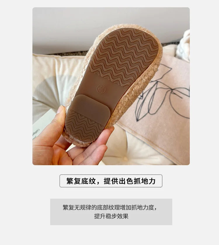 Fashion Girls' Shoes 2025 Autumn New Kids Cotton Shoes Comfort Anti Slip Girls Home Cotton Slippers Simple Child Flats Zapatos